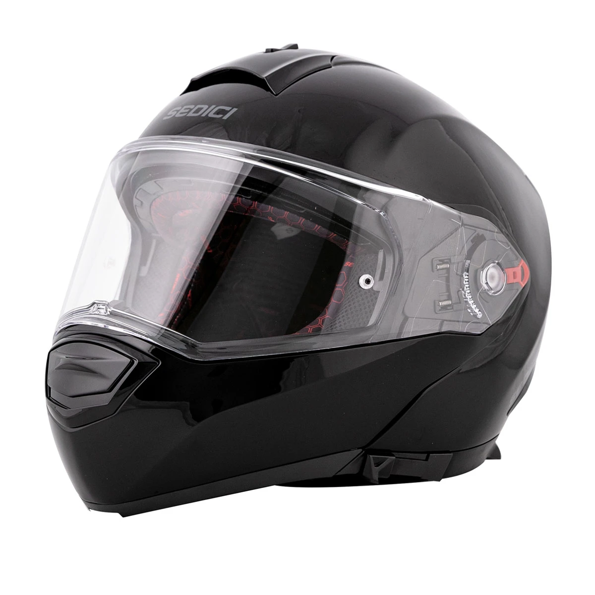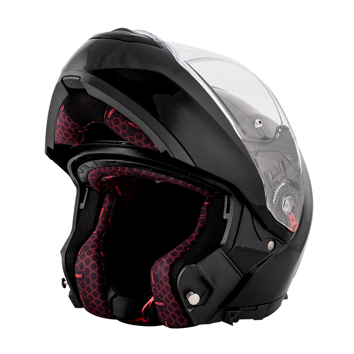 With the quick swipe of a glove-friendly slider, a dark smoke internal sun visor deploys. The moisture-wicking interior offers an antimicrobial treatment and is easily removed for washing throughout the riding season. Small panels of padding at the forehead and temples allow you to adjust the fit with 5mm of customization. A chin skirt to help seal off the bottom of the helmet and further manage wind noise is included. For sport riding, touring and everyday commuting, the Sedici Sistema 2 Helmet is a ready and willing match.